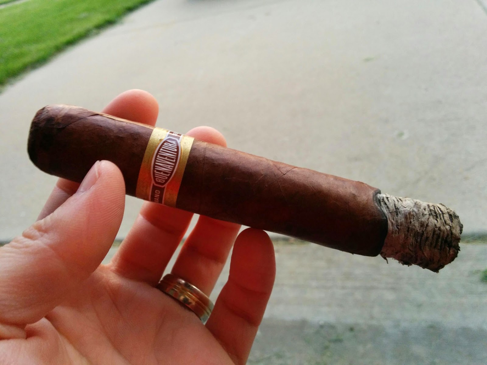 2/3: By this time, I've had to remove the wrapper entirely. It looked ugly. So, here I am smoking the cigar with the binder fully exposed, and no wrapper, which obviously impacts the flavor and the experience. Some Vitamin N is noticeable (nicotine), although due to being recently sick with pneumonia, I've not smoked many cigars lately, so my tolerance may be a factor here.